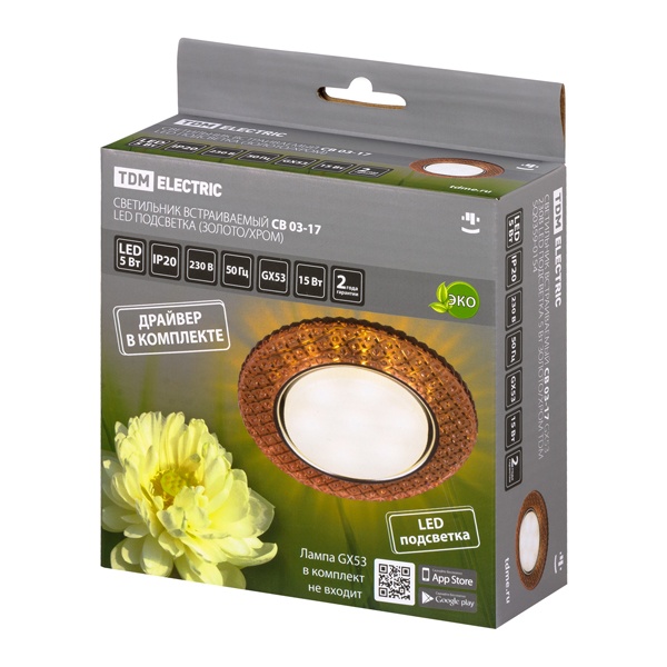 Светильник встраиваемый потолочный СВ 03-17 ТДМ, под лампу LED максимальной мощностью 15 Ватт с цоколем GX53, с подсветкой 5 Ватт, цвет золото/хром SQ0359-0154