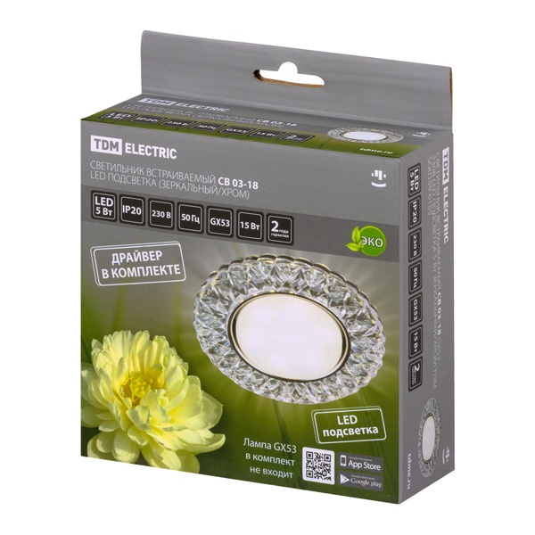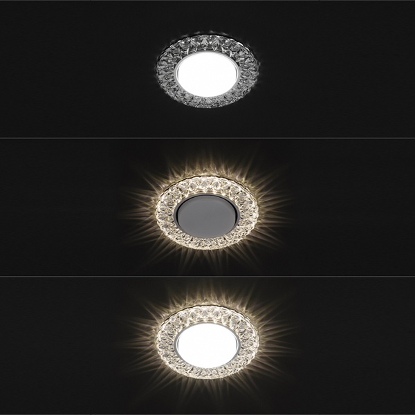 Светильник встраиваемый потолочный СВ 03-18 ТДМ, под лампу LED максимальной мощностью 15 Ватт с цоколем GX53, с подсветкой 5 Ватт, цвет зеркальный/хром SQ0359-0155