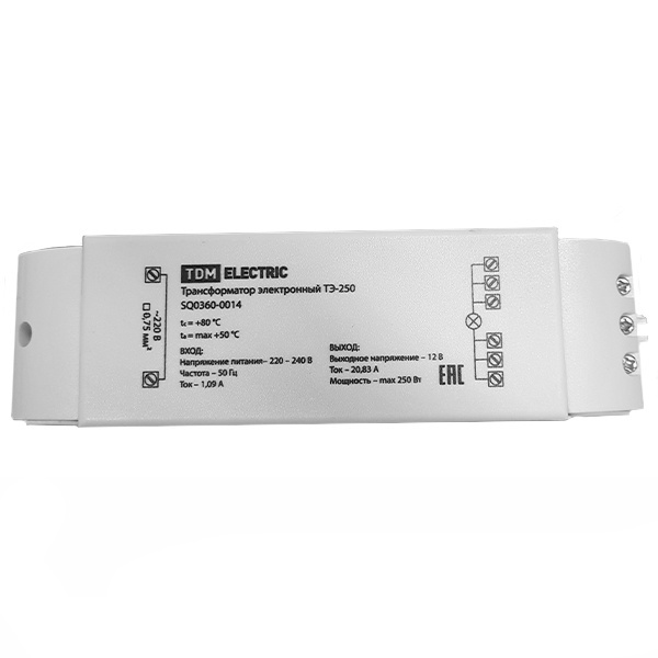 Электронный трансформатор TDM ТЭ-250 — это как раз тот случай, когда нужно аккуратно и без лишних усложнений запитать 12-вольтовый свет от обычной сети 220 В. Берут его чаще всего под галогенки или низковольтные светильники, когда хочется убрать громоздкий «железный» трансформатор и получить нормальную стабильную работу в реальной проводке. Модель рассчитана на нагрузку от 80 до 250 Вт — важно попасть в этот коридор, тогда он ведет себя предсказуемо.