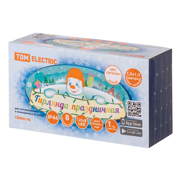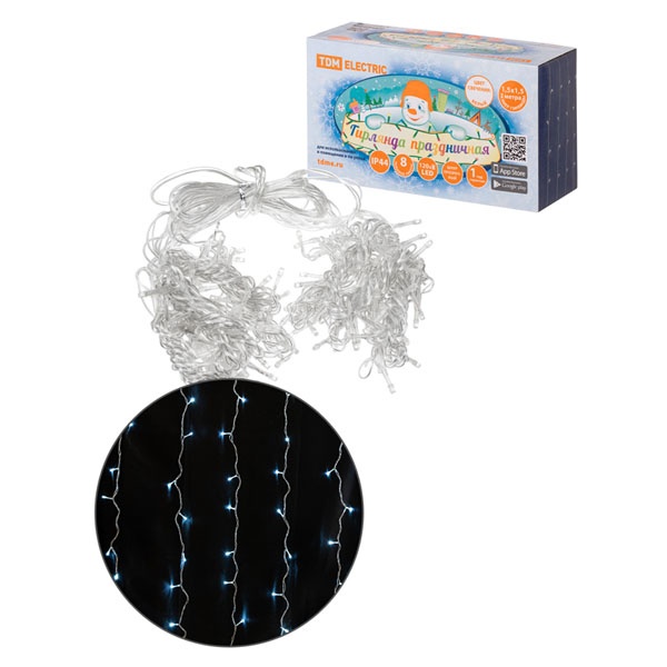 Праздничная светодиодная гирлянда ТДМ для использования внутри и снаружи помещений. Защищена от влаги и пыли (IP44), морозостойка - можно использовать на улице в регионах с низкими температурами. Идеальное решение для украшения окон, имеет оптимальные размеры: 1.5 х 1.5 м. На полупрозрачных малозаметных проводах размещены 70 ярких экономичных светодиодов с уютным белым светом. Стильная аккуратная с 8 режимами гирлянда создаёт позитивное настроение и незабываемую атмосферу в доме, офисе, общественном пространстве. Применяется для новогодней иллюминации, оформления праздников, дизайна фотозон.