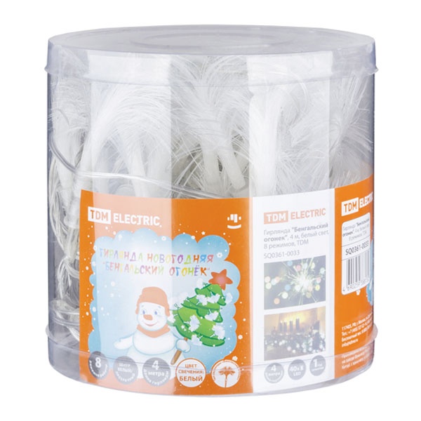 Гирлянда "Бенгальский огонёк" (длина 4 м, белый свет) от TDM — идеальный выбор для создания атмосферного декора в вашем доме. С её помощью можно эффектно украсить интерьер на праздники, тематические вечеринки или использовать как стильную подсветку в любое время года. Гирлянда оснащена 8 режимами работы, которые позволяют настроить освещение под ваше настроение: от плавного мерцания до динамичного переливания огоньков, создавая уникальную атмосферу.