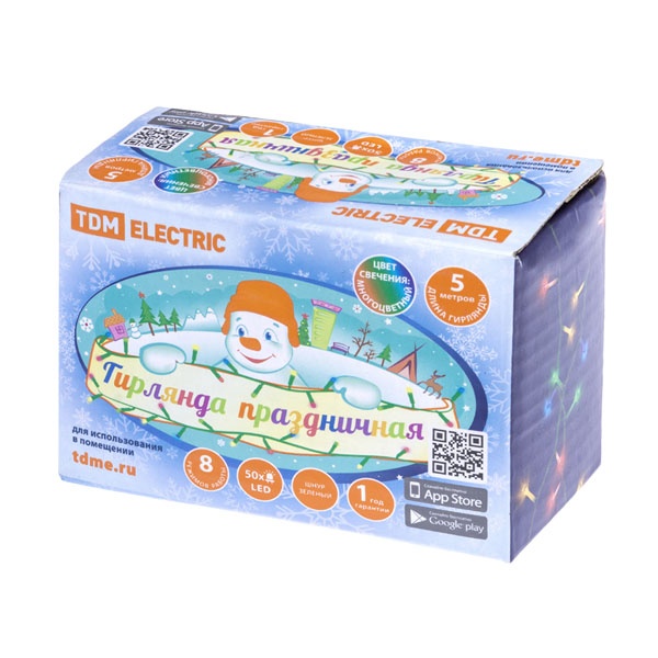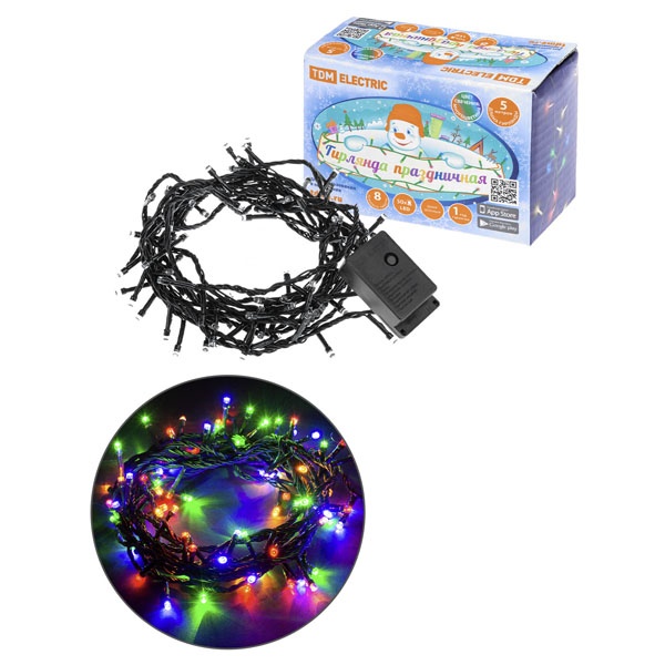 • Гирлянда светодиодная TDM СГ50МЗ5, многоцвет., зеленый шнур, 5м, 8 режимов, 250В, IP20
