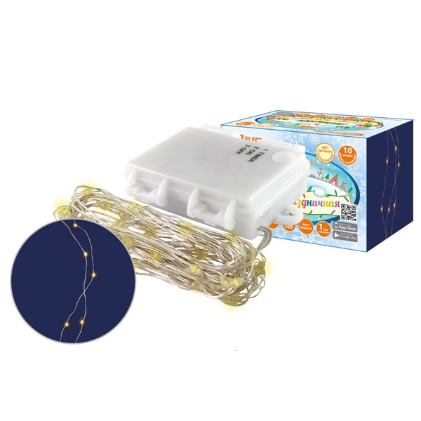 Гирлянда светодиодная TDM Роса100 100LED, 10м, 3000K, 3хАА, наружное использование, IP65 SQ0361-0058