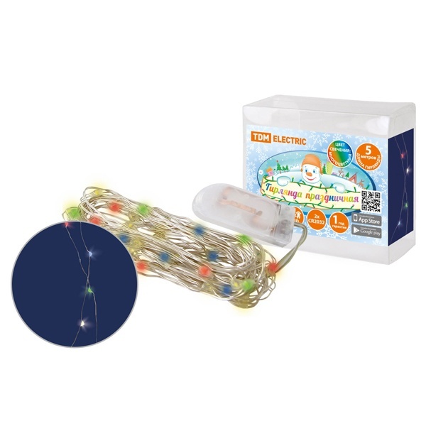 • Гирлянда светодиодная TDM Роса50 50LED, 5м, многоцветный, 2хCR2032