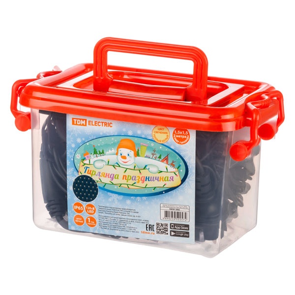 • Гирлянда светодиодная TDM Сеть 1,5х1,5 м, 120LED, 2700K, черный шнур, посл. подкл, IP65, 250В