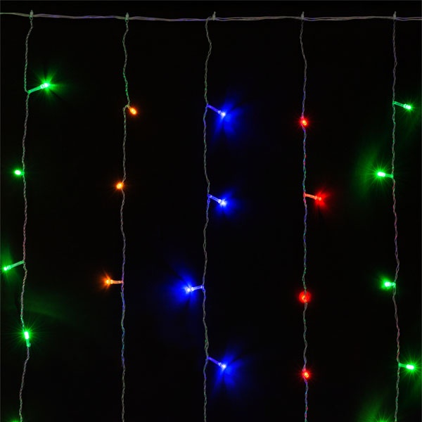 Новогодня гирлянда занавес ТДМ размером 1,5*1,5 метров для использования внутри помещений, 168 светодиодов многоцветного свечения на прозрачном проводе с 8 режимами, питанием от сети 220 Вольт. SQ0361-0070