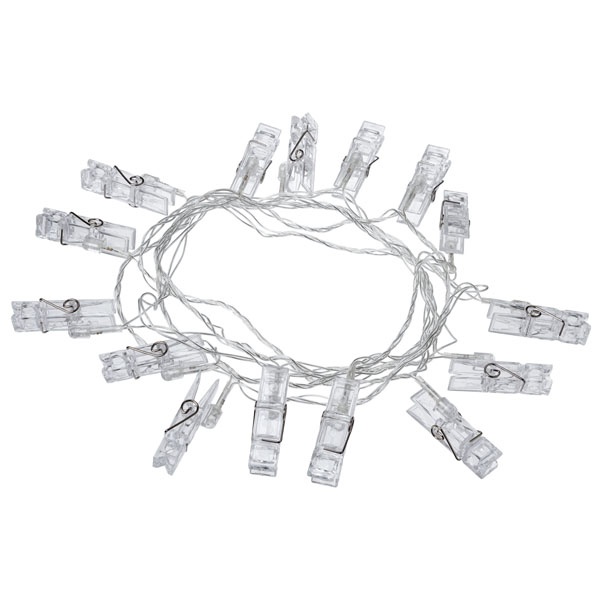 Декоративная гирлянда для использования внутри помещений ТДМ Прищепки на 220 Вольт, с 8 режимами, белого свечения с прозрачным проводом SQ0361-0093