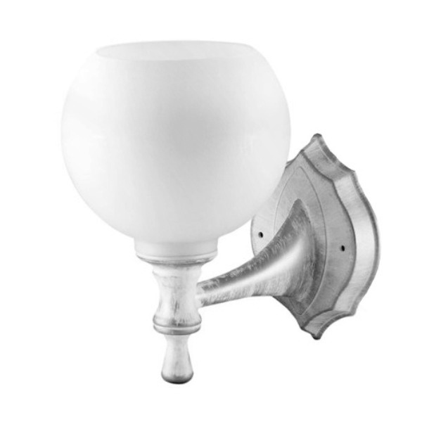 Настенный светильник серебрянно-белого цвета под лампы с цоколем Е27 мощностью до 60 Ватт с полусферическим белым плафоном, ТДМ НББ. SQ0370-0202