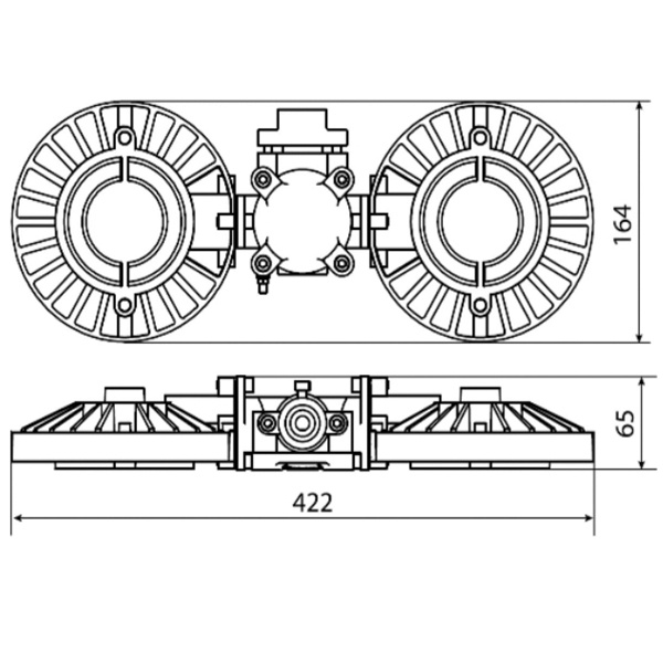 Серый светодиодный взрывозащищенный подвесной светильник ДСП мощностью 2*20 Ватт, с горизонтальным монтажом на трубу диаметром 3/4 дюйма, SQ0371-0047