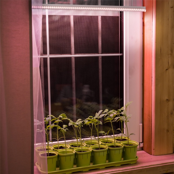 Назначение:Предназначены для создания дополнительного освещения растений. Преимущества:Качественное отведение тепла и правильный выбор режима работы светодиодов обеспечивают высокую надежность и долгий срок службы светильников – при использовании по 8–12 часов ежедневно – около 10 лет. Светильники создают мощный световой поток с фотосинтетическим активным излучением более 80% (ФАР>80%), который наиболее полно усваивается растениями. Два режима работы: «дополнительная синяя досветка» – необходим на этапе выращивания рассады и «основной полноспектральный» – для полноценного развития растений. Светильники можно размещать в непосредственной близости от растений, так как светодиоды не являются источником инфракрасного и ультрафиолетового излучения. Низкое тепловое излучение светильников не влияет на микроклимат в помещении, не является причиной интенсивного испарения влаги из почвы и не увеличивает число поливов. Различные способы крепления светильников: подвесной на тросах, настольный – крепление на ножках, накладной монтаж к полкам стеллажей, к стене или потолку. Конструкция:Конструкция светильников обеспечивает защиту от проникновения пыли и влаги, степень защиты IP54. Установлены 2 линейки полноспектральных фитодиодов и 1 линейка диодов с дополнительным синим спектром. Встроенный драйвер. Светильники оснащены питающим проводом и переключателем режимов работы. Материалы:Корпус: Анодированный алюминий Упаковка:Коробка из картона