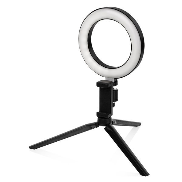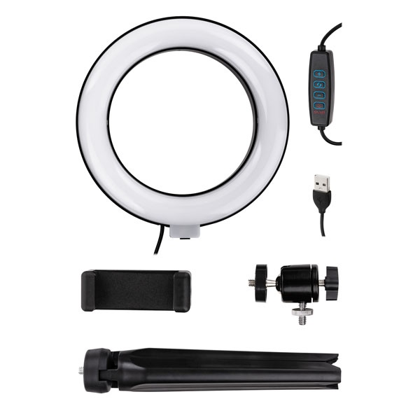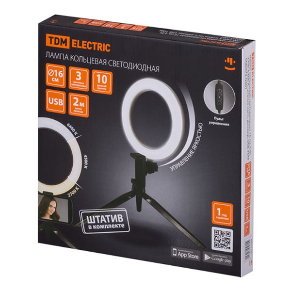 Настольная кольцевая лампа ТДМ на штативе для фото-видео съемок с регулировкой яркости и цветовой температуры , мощностью 6 Вт, диаметр 160 мм, SQ0373-0301