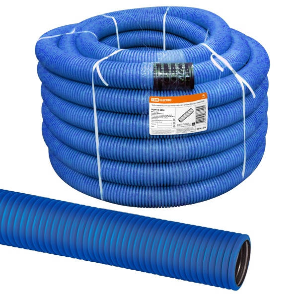 Гофра гибкая с протяжкой, двустенная из полиэтилена для прокладки кабеля, диаметром 63 мм, синего цвета, ТДМ Электрик SQ0413-6063