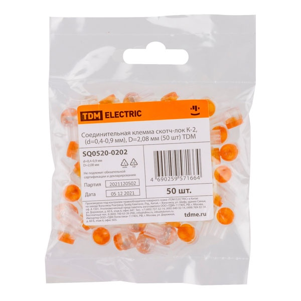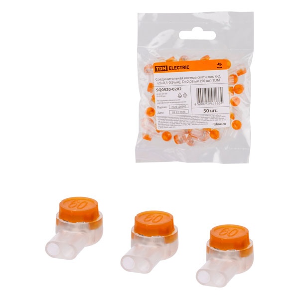 Клемма соединительная TDM Скотч-лок К-2 (d 0,4-0,9 мм) D 2,08 мм [упаковка 50шт] SQ0520-0202