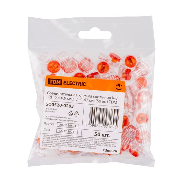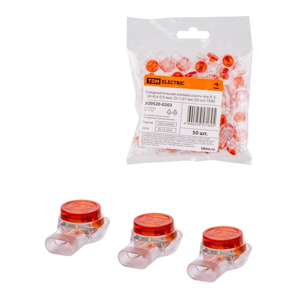 Клемма соединительная TDM Скотч-лок К-3 (d 0,4-0,9 мм) D 1,67 мм [упаковка 50шт] SQ0520-0203