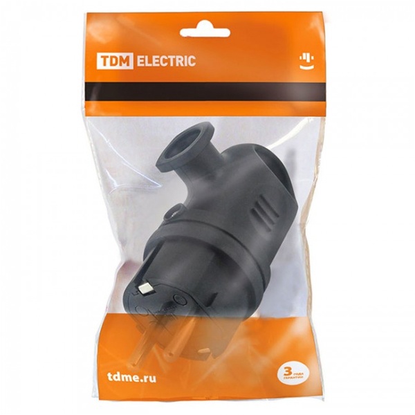 Электрическая вилка каучуковая угловая с заземляющими контактами, цвет черный SQ0612-0004