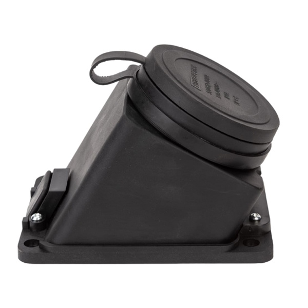 Угловая накладная четырехполюсная розетка из каучука 3P+PE ТДМ, с защитной крышкой, c защитой от брызг SQ0612-0009