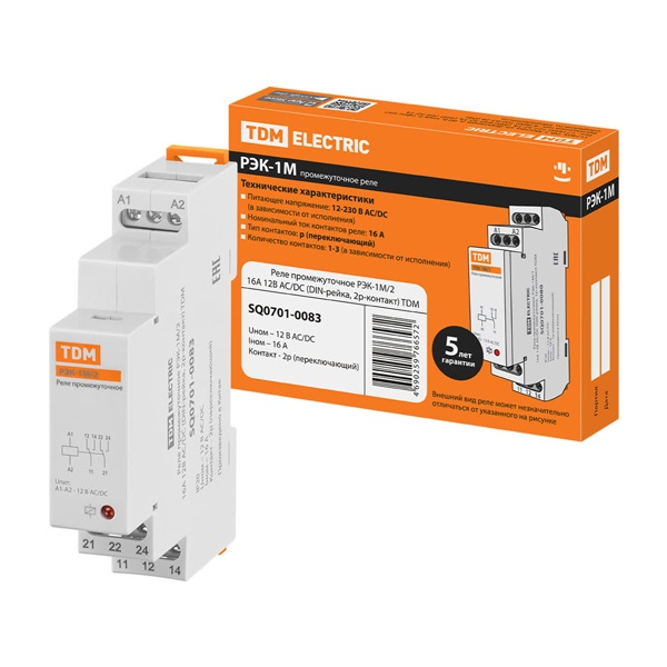 • Реле промежуточное TDM РЭК-1М/2 16А 2НО/НЗ 12В АС/DC