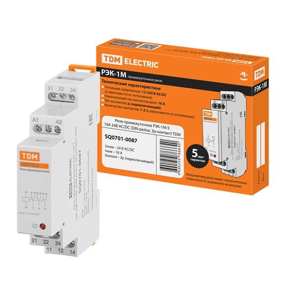 SQ0701-0087 Реле промежуточное TDM РЭК-1М/3 16А 3НО/НЗ 24В АС/DC