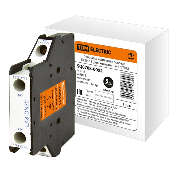 Приставка контактная боковая ПКБН-11 ТДМ, 1 замыкающий и 1 размыкающий контакт SQ0708-0092