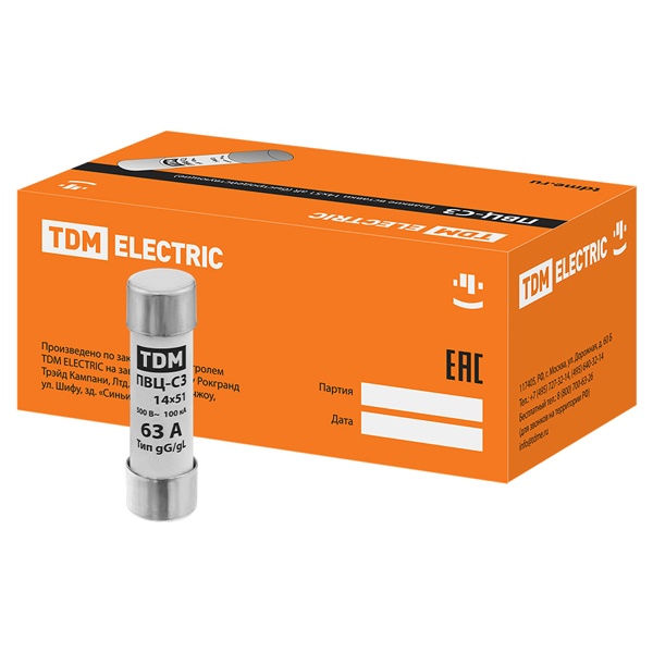 Плавкая вставка ПВЦ-С3 14х51 aR (быстродействующая) 63А TDM Electric