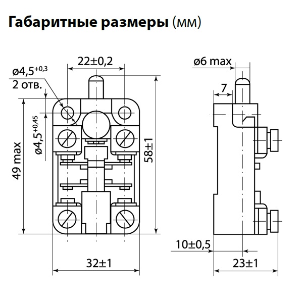 Контактное устройство торговой марки TDM Electric относится к серии ВПК и представляет собой путевой контактный выключатель в металлическом корпусе открытого типа. Он предназначен для коммутации цепей управления под воздействием управляющих упоров в определенных точках пути подконтрольного объекта. Контактор имеет 2 независимые электрические цепи и может работать как на переменном, так и на постоянном токе в повторно-кратковременном режиме. Внешне прибор представляет собой компактное устройство прямоугольной формы без степени защиты, но обладающее прочностью и высокой устойчивостью к коррозии. Контактная группа состоит из 1 разомкнутого и 1 замкнутого типа контактов, сделанных из меди с гальваническим покрытием. Выключатель рассчитан на токовую нагрузку до 10 Ампер при номинальном напряжении переменного тока 660 Вольт, а в цепи постоянного тока – до 440 Вольт. Он приводится в действие с помощью удлиненного толкателя. Полный ход толкателя составляет не более 8,5 мм, а прямой ход, не менее 5,3 мм. Механическая износоустойчивость достигает 16 млн циклов. Срок службы изделия не менее 10 лет при соблюдении рабочего температурного режима от +1 до +40.Параметры переключателя:ширина – 3,2 см;длина – 4,9 см, с приводом 7 см;глубина – 2,3 см.Аппарат промышленного назначения используется для лифтов, подъемников, строительных кранов, конвейеров, для устройств с автоматическим приводом.