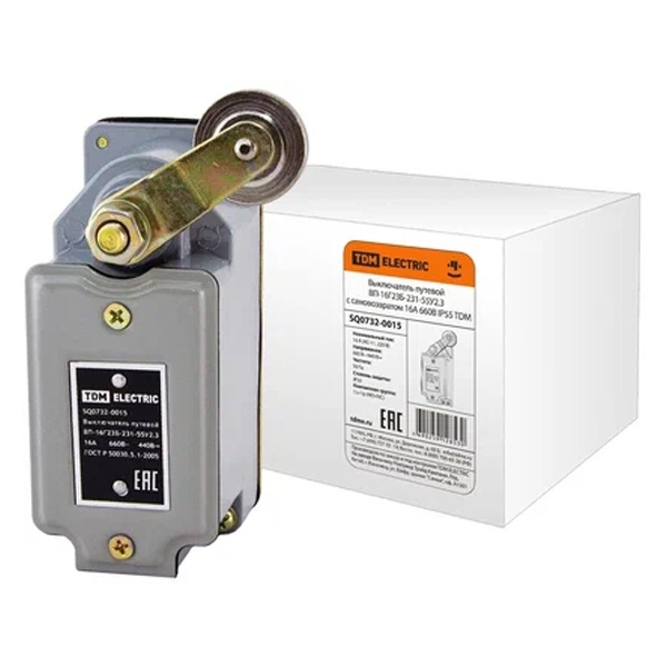Переключающее устройство торговой марки TDM Electric относится к серии ВП16 и представляет собой путевой выключатель в закрытом металлическом корпусе. Он предназначен для коммутации цепей управления под воздействием управляющих упоров в определенных точках пути подконтрольного объекта. Контактор имеет 2 независимые электрические цепи и может работать как на переменном, так и на постоянном токе в повторно-кратковременном режиме. Прибор промышленного назначения используется для лифтов, подъемников, строительных кранов, конвейеров и для устройств с автоматическим приводом. Выключатель рассчитан на ток до 16 Ампер при номинальном напряжении цепи переменного тока 660 Вольт и постоянного тока – 440 Вольт. Он приводится в действие с помощью рычага с роликом, обладающего функцией самовозврата. Контактная группа состоит из 1 разомкнутого и 1 замкнутого типа контактов, сделанных из меди с гальваническим покрытием. Прибор поставляется без сальника. Высокая степень защиты корпуса IP55 предотвращает от попадания влаги и пыли. Срок службы изделия достигает не менее 10 лет при соблюдении рабочего температурного режима от –40 до +70.Параметры переключателя:длина – 11,7 см;ширина – 5,2 см;глубина – 7,9 см.