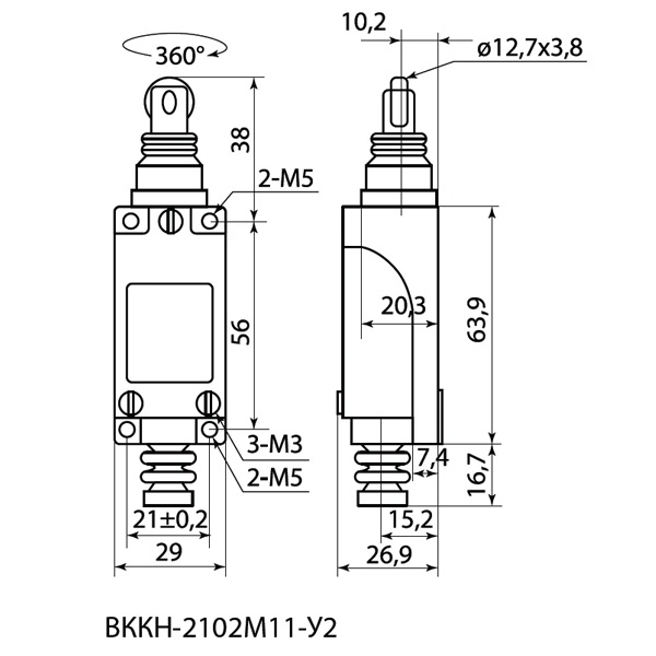 Концевой выключатель ВККН 2102М11 роликовый толкатель 5А 1з+1р IP65 TDM Electric