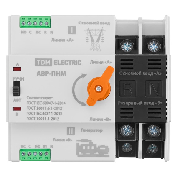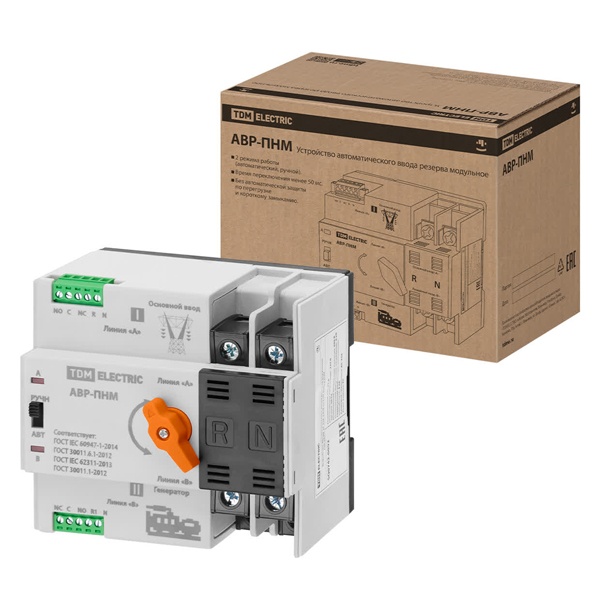 Для автоматического или ручного переключения на резервный (аварийный) источник питания в однофазной сети с номинальным напряжением 230 В переменного тока, частотой 50 Гц с отключением подачи питания к нагрузке во время переключения.
