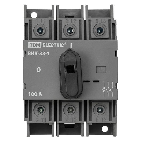 Рубильник TDM ВНК-33-1 на 100 А с фронтальной ручкой — это тот самый «понятный» выключатель нагрузки, который ставят, когда нужно быстро и надежно обесточить линию или участок щита. Никакой электроники и сюрпризов: четкое механическое переключение и наглядное положение рукоятки.
