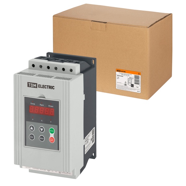 Устройства плавного пуска товарной марки ТДМ предназначены для плавного запуска трехфазных электрических асинхронных двигателей с целью снижения пиковых нагрузок на двигатель и питающую сеть. УПП используются в трехфазных электрических сетях переменного тока с напряжением до 460 В и частотой 50/60 Гц промышленных объектов. При подключении УПП необходимо использовать автоматический выключатель и магнитный пускатель (номиналом в соответствии с мощностью электродвигателя и УПП).