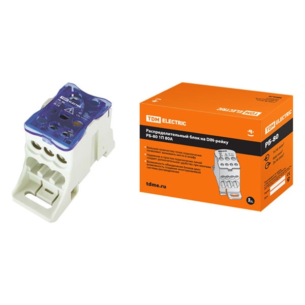 Распределительный блок на DIN-рейку РБ-80 1П 80А (1х16/4х6+2x16) TDM Electric