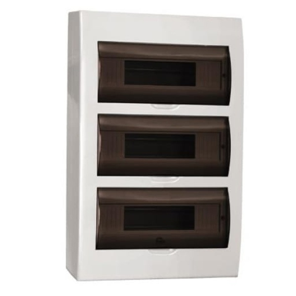 Щит навесной TDM ЩРН-П-36 (3x12) модулей пластик IP41 белый — распределительный электрический шкаф для аккуратного размещения и защиты модульной аппаратуры в жилых, коммерческих и административных помещениях. Корпус выполнен из пластика, рассчитан на настенный (навесной) монтаж и подходит для сборки распределительных щитов с автоматическими выключателями, УЗО, дифавтоматами, реле и другими устройствами стандартного модульного форм-фактора.