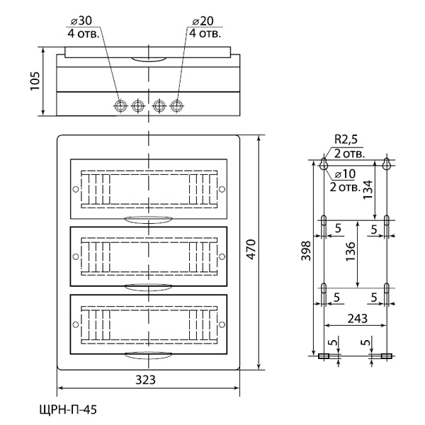 • Щит навесной TDM ЩРН-П-45 (3x15) модулей пластик IP41 белый (электрический шкаф)
