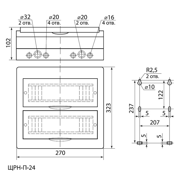 • Щит распределительный навесной TDM на 24 модуля (2х12) под дерево Сосна