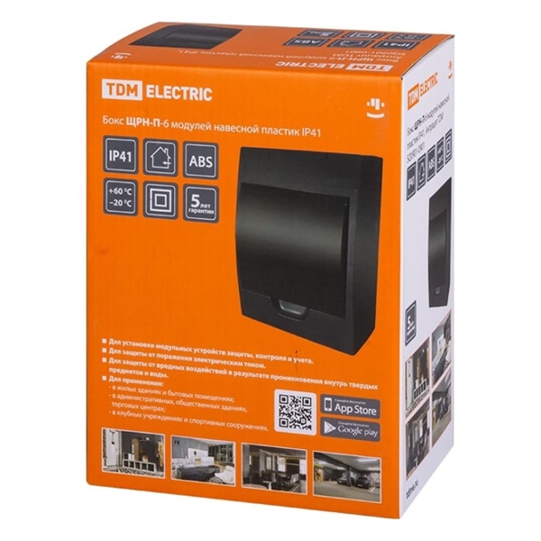 • Щит навесной TDM ЩРН-П-6 (1x6) модулей пластик IP41 антрацит (электрический шкаф)