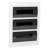 Пластиковый, распределительный щит скрытой установки ТДМ ЩРВ-П белого цвета, трехрядный сорок пять модулей темная прозрачная дверца SQ0902-0011