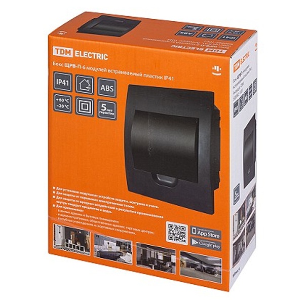 • Щит встраиваемый TDM ЩРВ-П-6 (1x6) модулей пластик IP41 антрацит