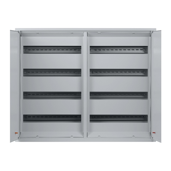 Серый накладной распределительный электрощит из металла ТДМ ЩРН четырехрядный 144 модуля с двумя дверцами SQ0905-0024