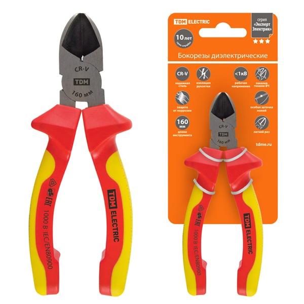 Бокорезы диэлектрические, 160 мм, 1000 В, CR-V, «ЭкспертЭлектрик» TDM Electric