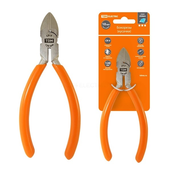 Назначение:Предназначены для обрезки проводов и проволоки небольшого диаметра, разрезания отдельных составляющих кабелей, небольших разрезов листового металла и пластмассы при монтаже или демонтаже оборудования. Возможно использование для зачистки кабеля, который не находится под напряжением. Ножи инструмента диагонального типа. Преимущества:Надежная сталь, режущая кромка, закаленная токами высокой частоты. Антикорозийное покрытие. Материалы:Высококачественная инструментальная сталь Однокомпонентная или двухкомпонентная рукоятка.