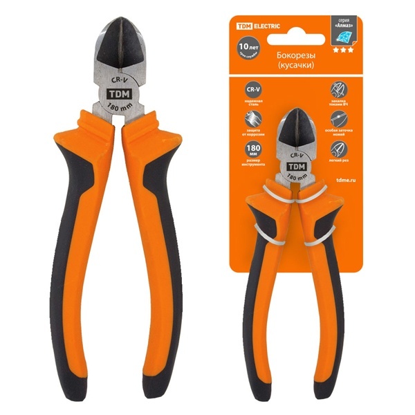 Назначение:Предназначены для обрезки проводов и проволоки небольшого диаметра, разрезания отдельных составляющих кабелей, небольших разрезов листового металла и пластмассы при монтаже или демонтаже оборудования. Возможно использование для зачистки кабеля, который не находится под напряжением. Ножи инструмента диагонального типа. Преимущества:Надежная сталь, режущая кромка, закаленная токами высокой частоты. Антикорозийное покрытие. Материалы:Высококачественная инструментальная сталь Однокомпонентная или двухкомпонентная рукоятка.