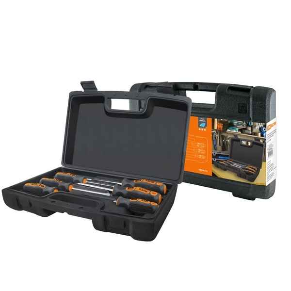 Набор из 6 отверток с прямым и крестообразным шлицем, в пластиковом боксе, магнитные наконечники SQ1013-0205