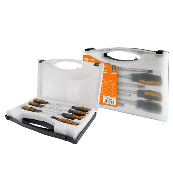 Набор из 7 отверток с прямым и крестообразным шлицем, в пластиковом боксе, магнитные наконечники SQ1013-0206