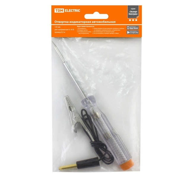 Отвертка-пробник (индикатор) автомобильная 135 мм, 6-24В, провод 0.5м, "ЭкспертЭлектрик" TDM Electric