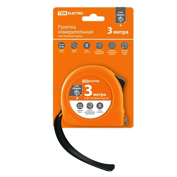 Назначение:Для измерения длины предметов, расстояний, проведения разметочных работ. Применение:В быту: для установки мебели, декоративных элементов и т.д. В строительстве: для укладывания элементов конструкций, разметки и т.д. В промышленности: для установки и монтажа конструкций, прокладки кабеленесущих систем. Преимущества:Надежная сматывающая пружина и удобный корпус. функция автостоп – автоматическая фиксация выдвинутого измерительного полотна (в серии "Алмаз") Магниты для зацепления за металлические предметы и дополнительные зубцы в крючке (в серии «Рубин»). Прорезь в крючке для черчения окружностей (в серии «Гранит»). Дополнительное усиление заклепок крючка. Удобство и долговечность-прорезиненная вставка способствует хорошему захвату инструмента и надежно защищает корпус рулетки от повреждений при падении Утолщенное пластиковое покрытие ленты, защищающее разметку. Удобный подвес для размещения в торговом зале, который содержит всю необходимую информацию о преимуществах продукта и типе отвертки, а также штрих-код Материалы:ПВХ Сматывающий механизм - высококачественная пружинная сталь. Лента - высококачественная прокатная сталь с полимерным покрытием, защищающим от ржавчины.
