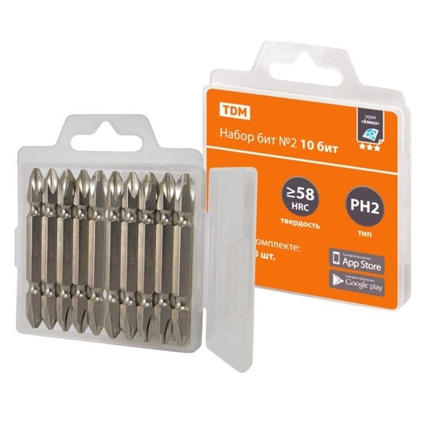 Набор бит №2, 10 бит: PH2x10, сталь S2 в пластиковом держателе, «Алмаз» TDM Electric