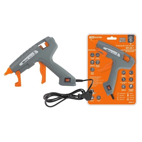 Клеевой пистолет мощностью 20 Ватт, для стержней ∅ 7 мм, ТДМ SQ1024-0303