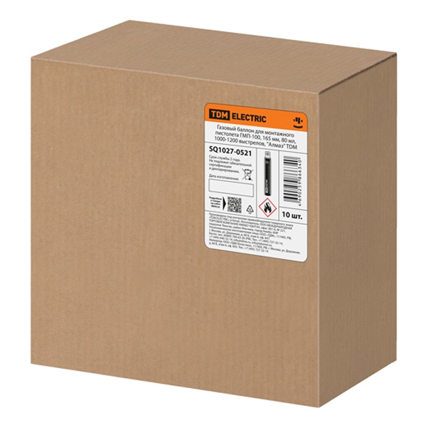 Газовый баллон "Алмаз" TDM предназначен для питания монтажного пистолета ГМП-100. Благодаря объёму 80 мл и длине корпуса 165 мм, один баллон обеспечивает стабильную работу инструмента при интенсивных монтажных работах, позволяя выполнить от 1000 до 1200 выстрелов без замены.
