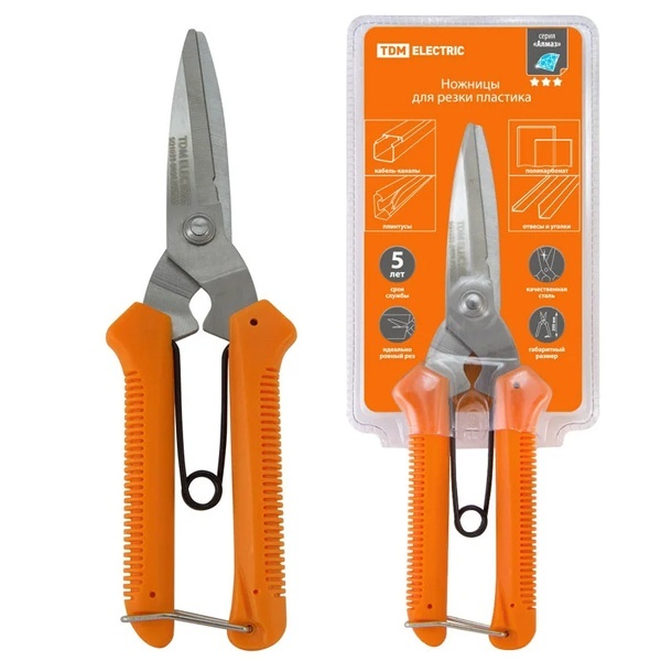 Назначение:Выполнение точных разрезов изделий из пластика (кабель-каналов, плинтусов, пластиковых покрытий и пр.) и поликарбоната. Преимущества:Высокая точность реза. Удобные нескользящие рукоятки. Качественная сталь режущих частей. Петля фиксации рукояток в закрытом виде для удобства транспортировки и защиты лезвий. Материалы:Пластик Нержавеющая сталь.