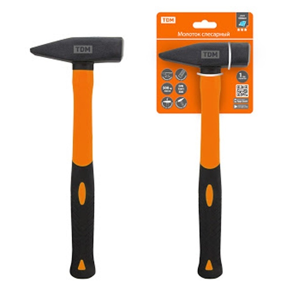 Молоток слесарный, 500 гр, кованый, с прорезиненной фиберглассовой рукояткой "Алмаз" TDM Electric